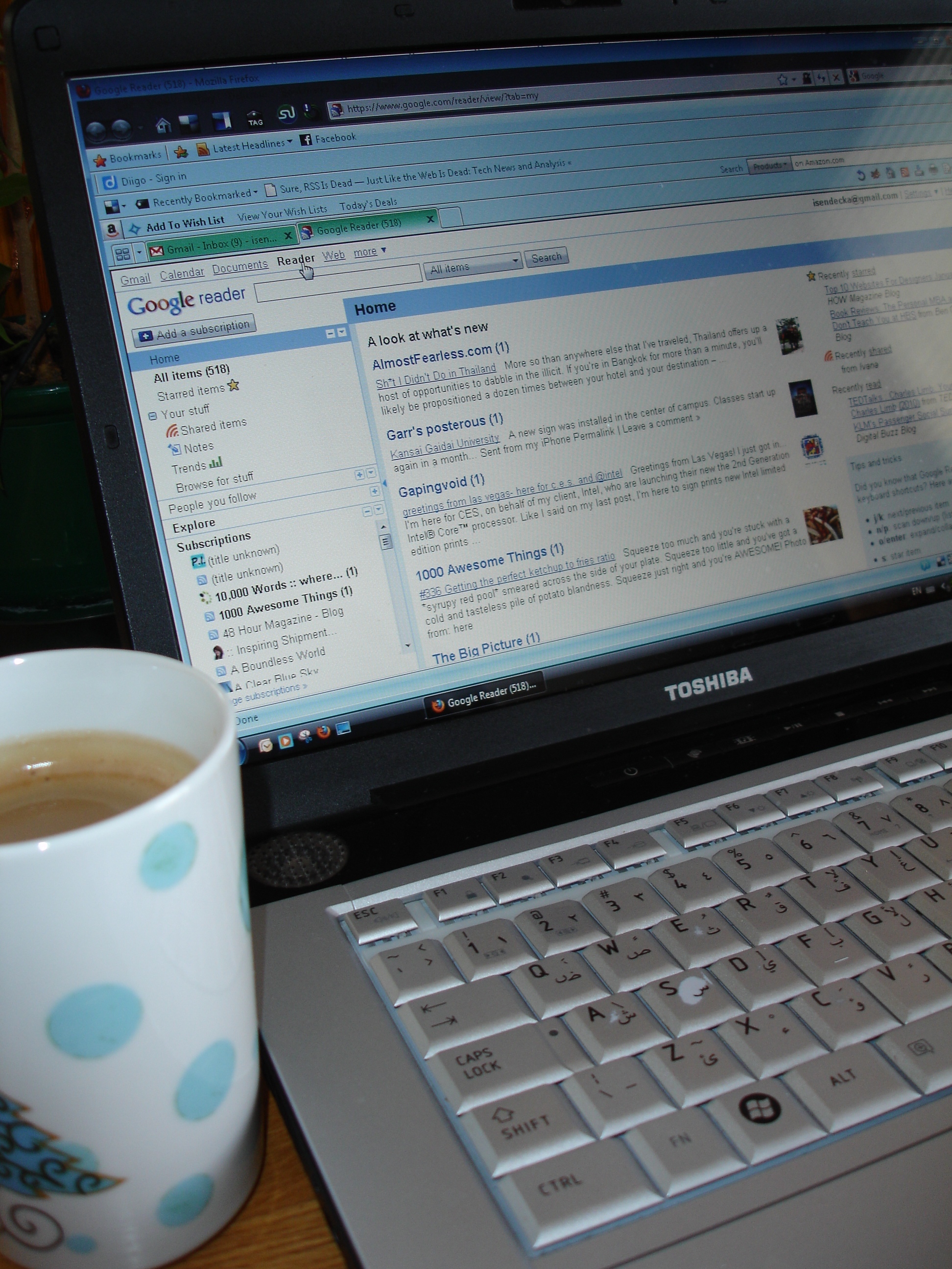 I am glad that, #IS belong to non-mainstream fans of RSS feeds and that I do start every morning as pictured above; with cup of coffee and Google Reader feeds of 300+ blogs, which I follow.