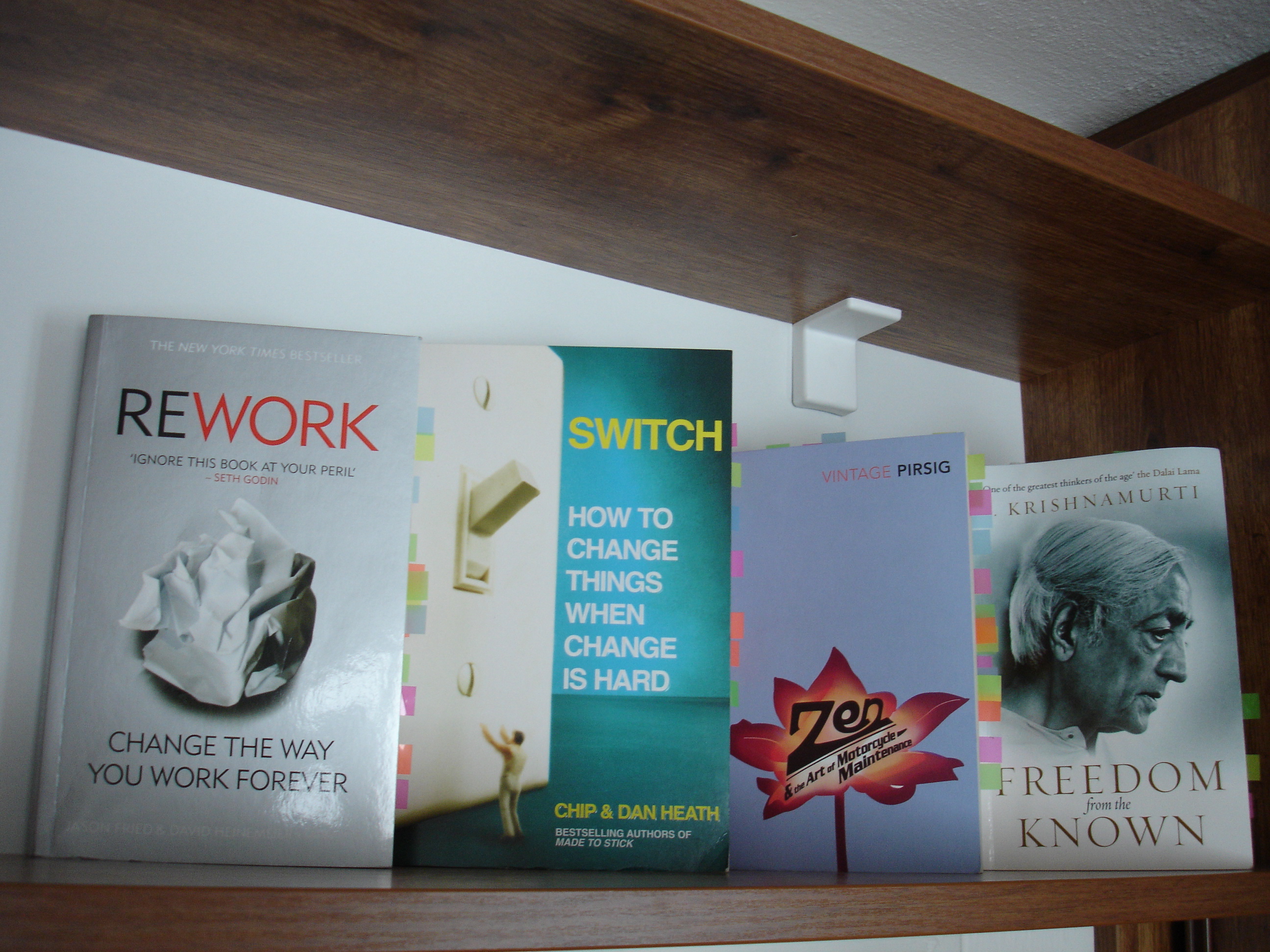 I am kinda excited to share with you brisk reviews of books consumed during 1st month of 2011; January’s portion contained-> classics by Robert Pirsig: Zen and the Art of Motorcycle Maintenance; Heath’s brothers brought in great insights on managing change in their book Switch; Guys from 37 signals wrote brilliantly bold and easy to read (harder to execute though) book Rework & I have concluded month with Freedom from Known by Jiddu Krishnamurti. So, let’s dig into 4 pieces, which kept me awake during nights, aware during days & inspired me to act, change & re-learn.